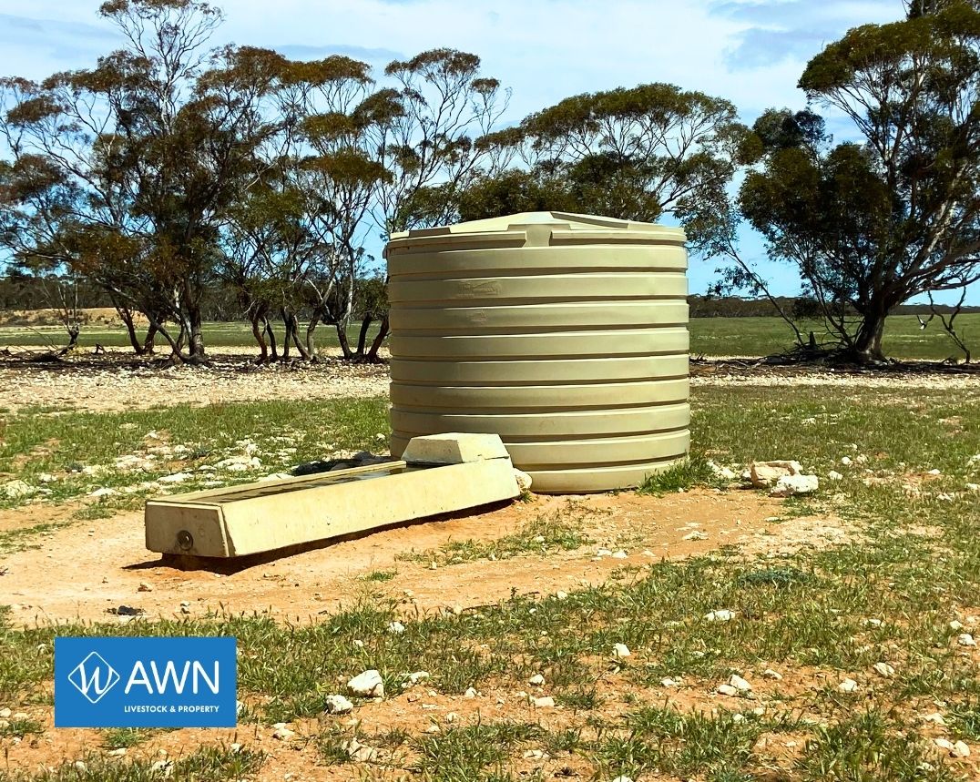 "Drought proofed" by the abundant and secure groundwater beneath the farm, bores provide water for stock and broadacre spraying, with both electric submersible and solar pumps in use, delivering water to a network of poly tanks and concrete troughs via poly pipe.