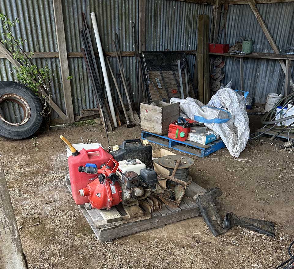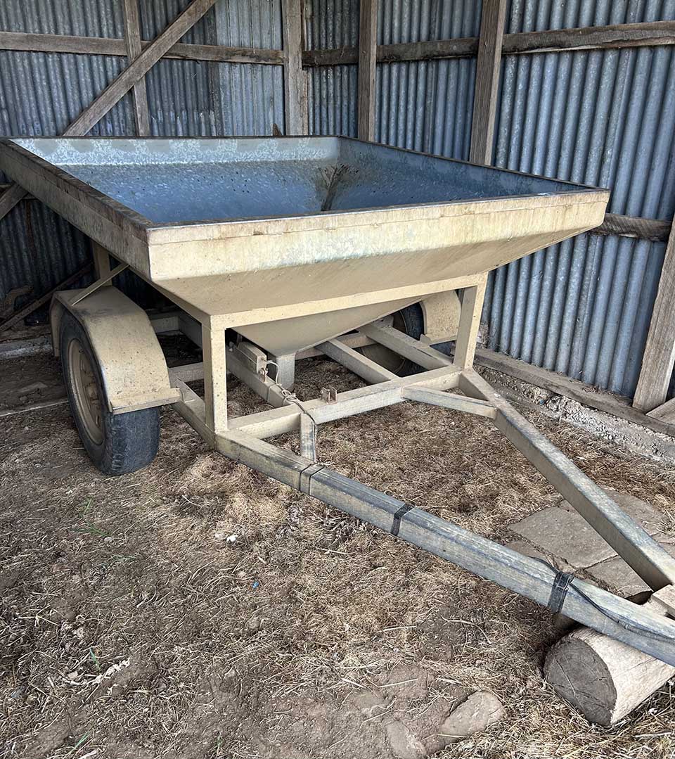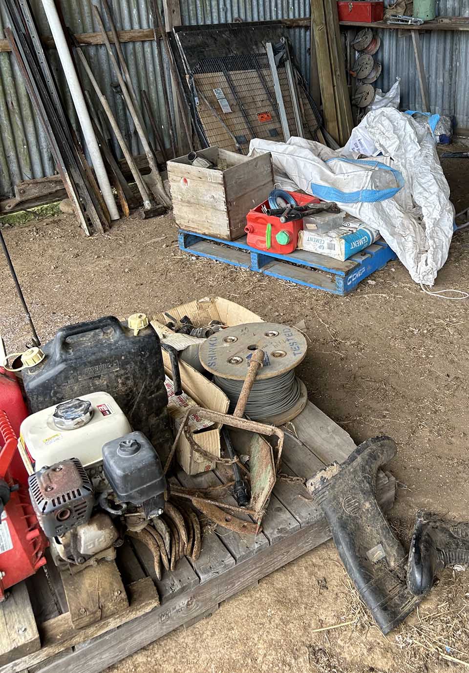 TRUE TEST WEIGH BARS AND INDICATOR AND WEIGH CRATE, WOOL TABLE, POWERTECH SINGLE PHASE WOOL PRESS, SUNBEAM SHEARING GRINDER, COMPANION GAS TAIL DOCKING TOOL X 2, MEAT BANDSAW, 2 DOOR FRIDGE, SHEEP MARKING CRADLE, 5 SHEEP YARD PANELS, SHEEP UTE HURDLES X 2, QUANTITY TIMBER, WATER TANK, QUANTITY STEEL MESH, QUANTITY OF GUARD RAIL AND POSTS, CULVERT PIPES, TELEGRAPH POLES, QUANTITY TREATED POSTS, CATTLE GRID, PORTABLE GRAIN BIN, DELMADE ROLLER 12 FOOT, S TYNE CULTIVATOR, HARROWS, BOOM SPRAY 500LTRS NUFARM, AUGER, GRAIN BAGGING BIN, FIRE FIGHTING UNIT, 6 FOOT SLASHER, BURDER SOFT HANDS, GILTRAP FEED OUT WAGON, LELY SPLENDIMO MOWER 7 DISC, PORTABLE SILO 20T, ISUZU TRUCK 1995 MODEL WITH REGO, GRAIN FEED OUT WAGON ELECTRIC CONTROLS, DUNCAN 734 MULTI SEEDER 16 DISC, UTE BACK DIESEL TANK, HONDA FIRE FIGHTING PUMP, QUANTITY WORK SHOP GEAR, FENCING WIRE SPINNER, FUEL TANK, 3 POINT LINKAGE HYDRAULIC PALLET FOLKS, ROOFING IRON, 3 POINT LINKAGE BUCKET, PORTABLE SHEEP RACE WITH PANELS, STOCK HURDLES X 2, SMUDGE BAR, 2 X CEMENT WATER TROUGHS, QUANTITY POLLY PIPE, POTTINGER TERRADISC 24 PLATE DISCS, 4 SECTIONS OF HARROWS, SPLIT POST AND RAILINGS, OLD HALF TONNE SPREADER, WOODEN DROPPERS, PORTABLE SHEEP JETTER, QUANTITY NUTS AND BOLTS, 3 POINT LINKAGE RIPPER, 3X BIG RIPPERS, HONDA GENERATOR 3.3KW, HONDA STEEL PICKET RAMMER, POLARIS 550 SPORTSMAN 4 WHEELER 2064 HOURS, DARCHE ROOF TOP CAMPER TENT, QUANTITY ANTIQUE FURNITURE, 3500 TONNES OF GRAVEL