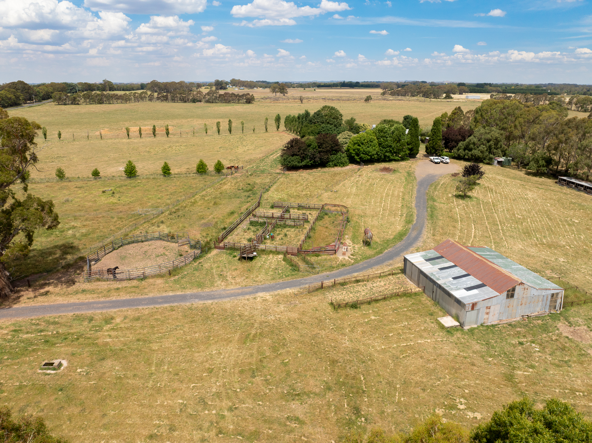 At the heart of the property sits an early 1900s double-brick homestead with later extension, rich in character and charm. The original residence features three bedrooms, a living room and kitchen, with high ceilings, timber floors, ornate cornices, double-sided fireplaces, and verandahs on two sides. The kitchen, renovated in the 1990s, offers an electric stove and oven, original Aga-style stove, dishwasher, timber cabinetry and ample storage.