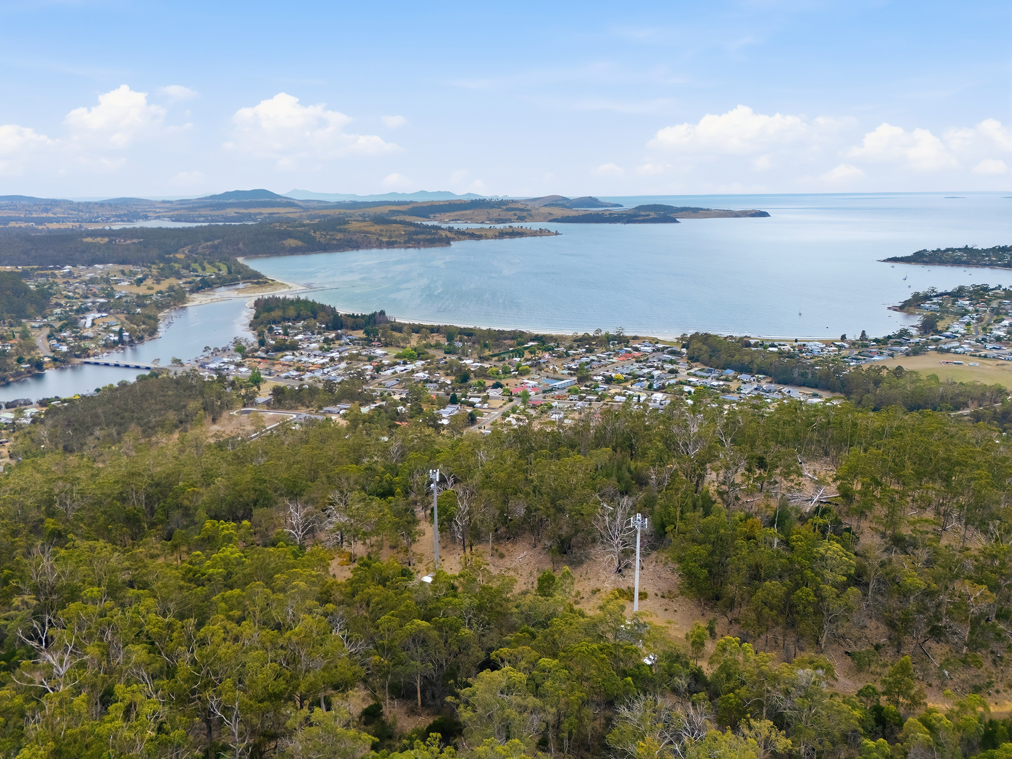 Positioned to capture breathtaking coastal scenery, this exceptional property enjoys sweeping views over the ocean, Maria Island and the charming township of Orford. Oriented to the south-east, the setting offers a peaceful atmosphere with extensive privacy, making it a truly special holding.