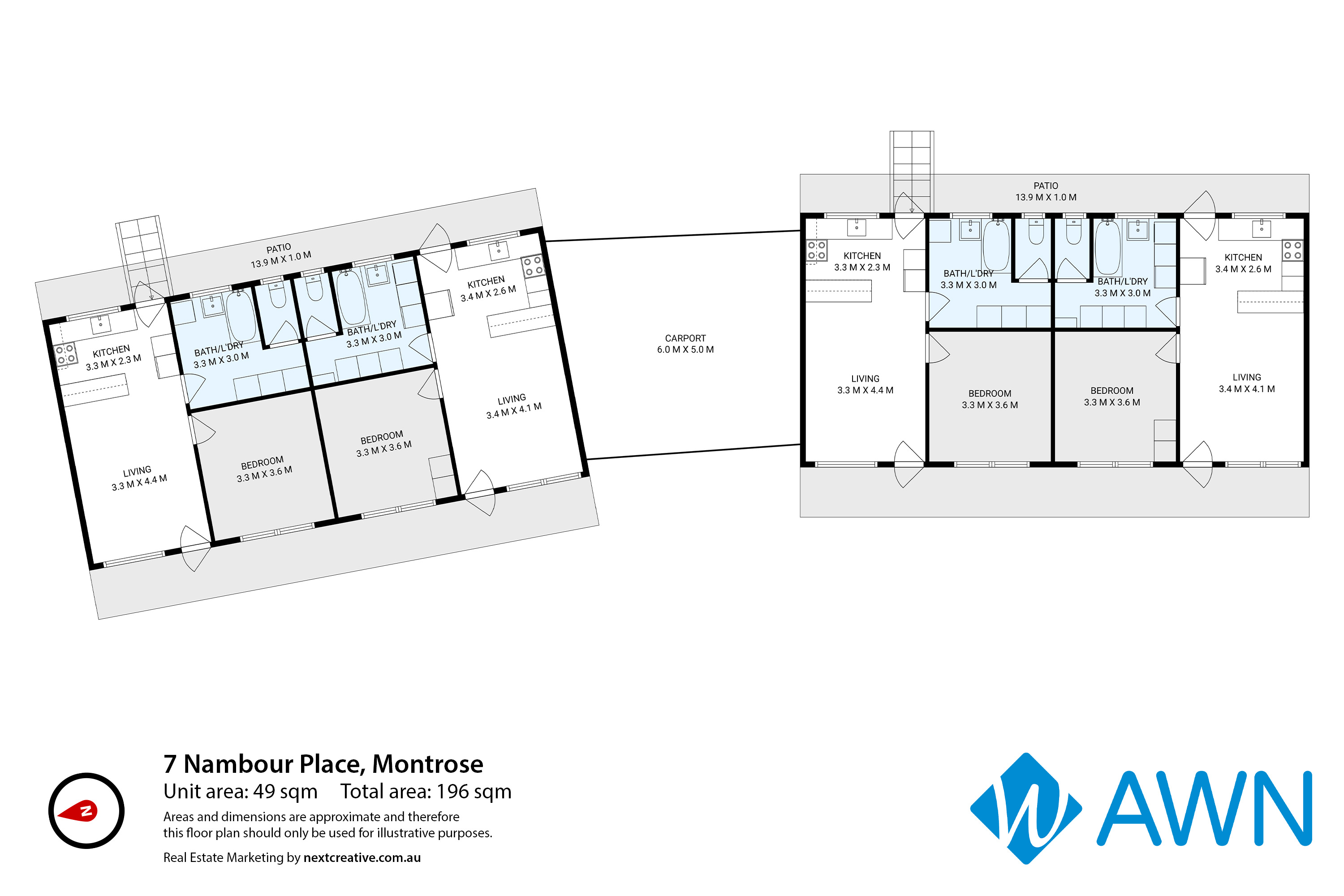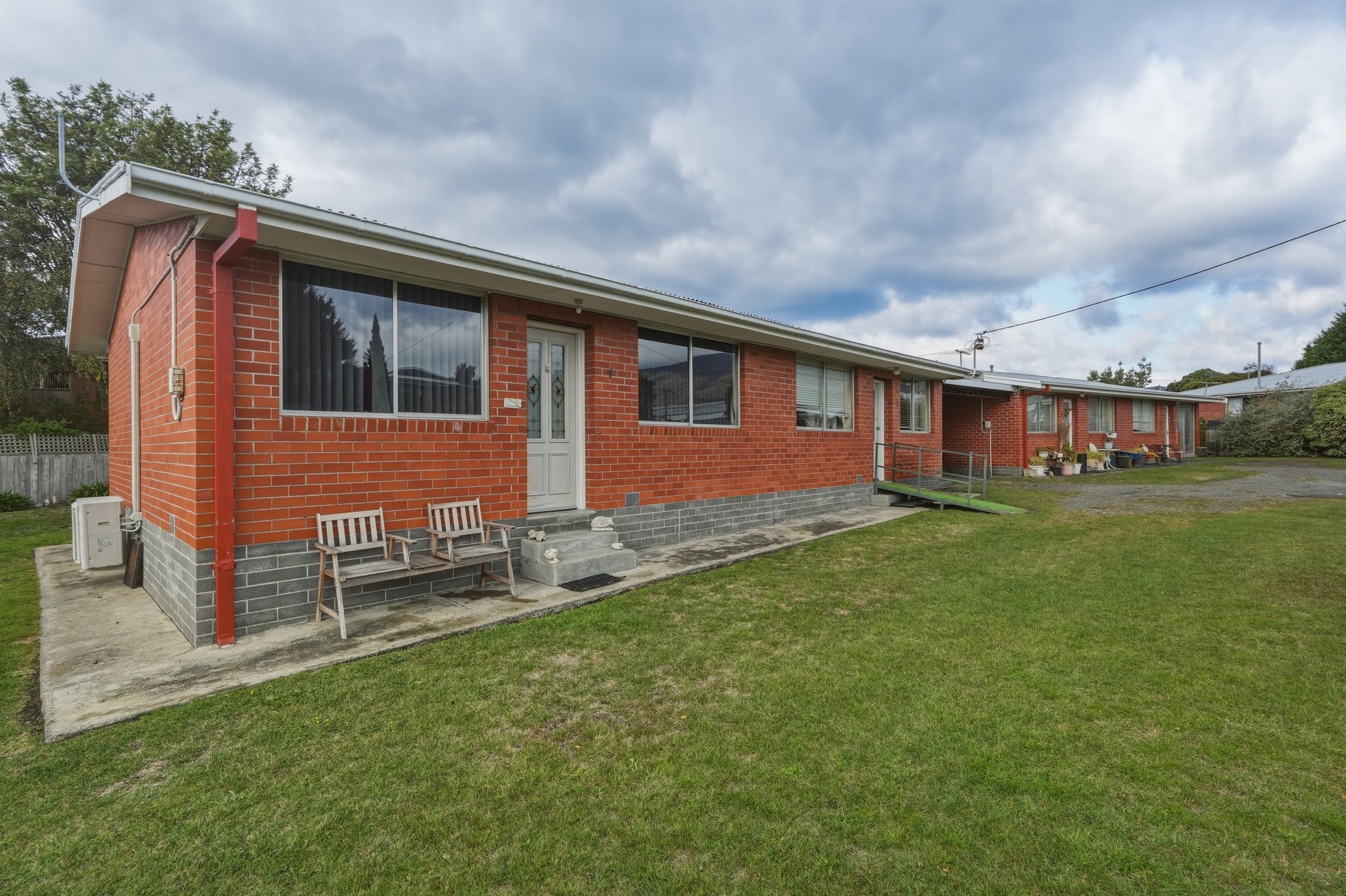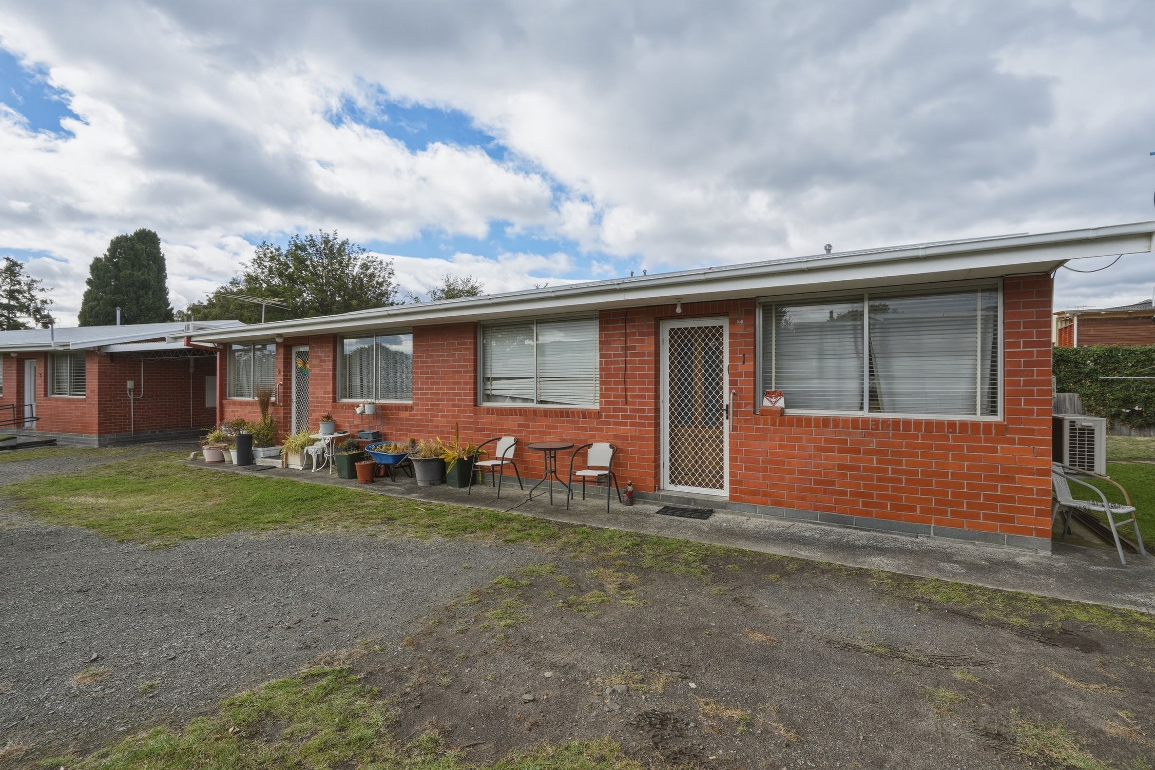 The dual brick buildings, 104m2 each in size offer two conjoined units per structure with mirrored floorplans, 49m2 in size each dwelling. Respective units are configured as an open living room with suitable kitchen, combined bathroom and laundry, plus one spacious bedroom.