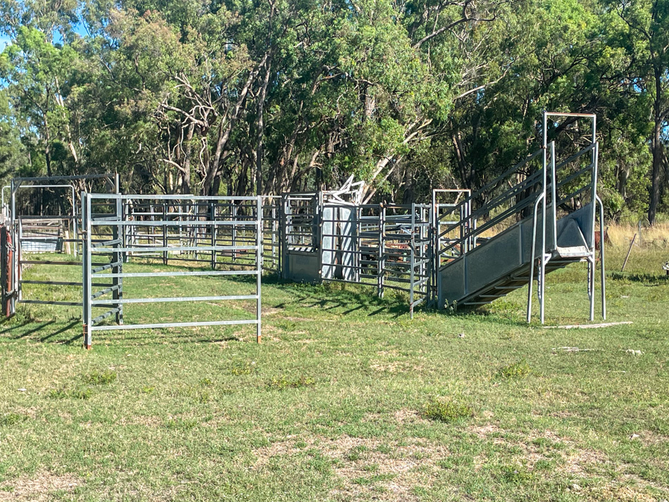 Outdoors, the property is thoughtfully set up for livestock and self-sufficient living. Fully fenced, it includes an operating bore, new concrete stock troughs, and functional stock yards. Additional improvements feature a two-bay shed with both mains and solar power, pig pens, original horse stables, and a variety of established fruit trees.
