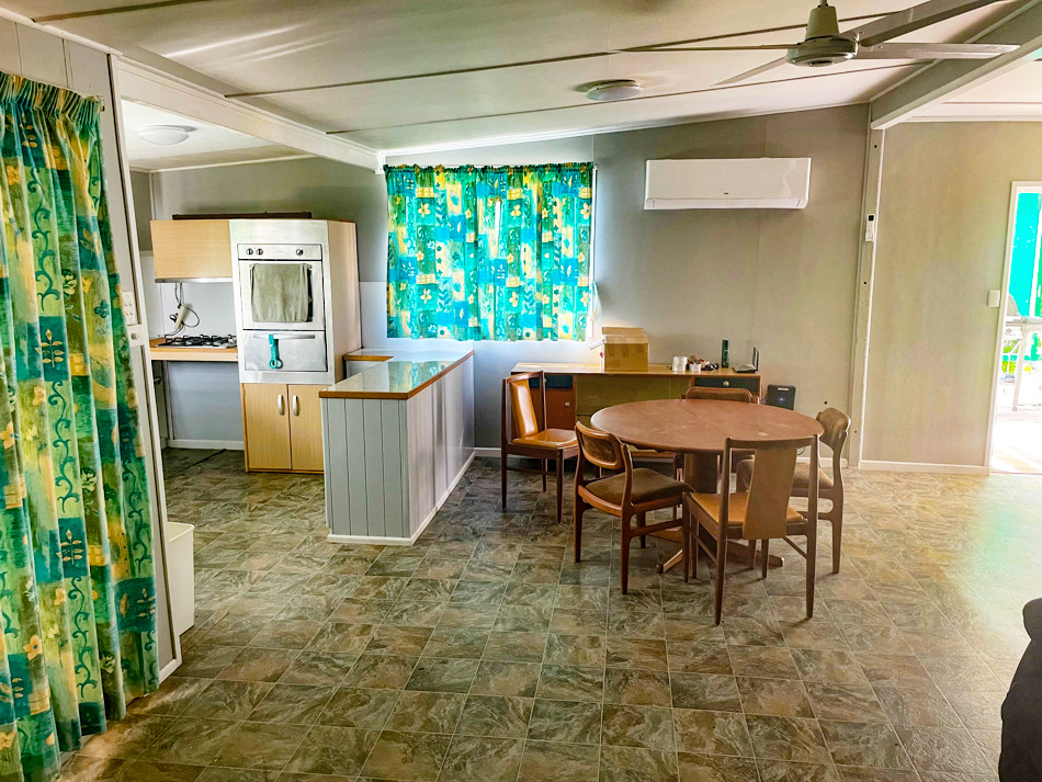 The inviting four-bedroom, two-bathroom home is designed for comfort, featuring air conditioning, a fireplace, and a gas stove and oven. The well-equipped kitchen includes a dishwasher, while approximately 70,000 litres of rainwater storage supports the home.